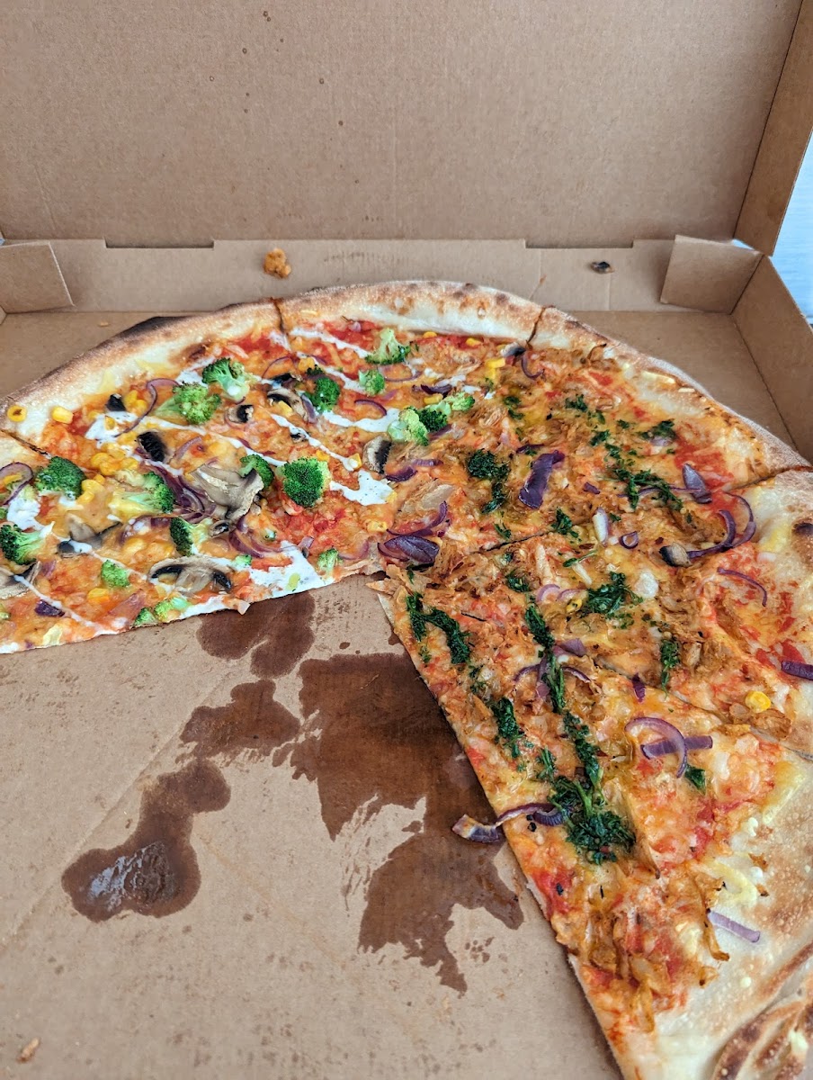 One of the standout items is their Garlic Knots-soft, pillowy, and bursting with garlicky goodness. They pair beautifully with a glass of wine, making a simple starter feel indulgent. For something playful and nostalgic, the Corn Dog brings back childhood memories, reimagined in a plant-based, vegan-friendly way that’s just as satisfying as the original. But the real showstopper has to be the Half and Half Chimichurri Rock Your Broc Out pizza. With its perfectly crisp crust and vibrant toppings, it’s a flavor explosion that’s as Instagram-worthy as it is delicious.